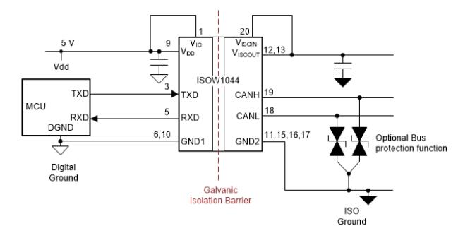 带集成隔离电源的隔离CAN: